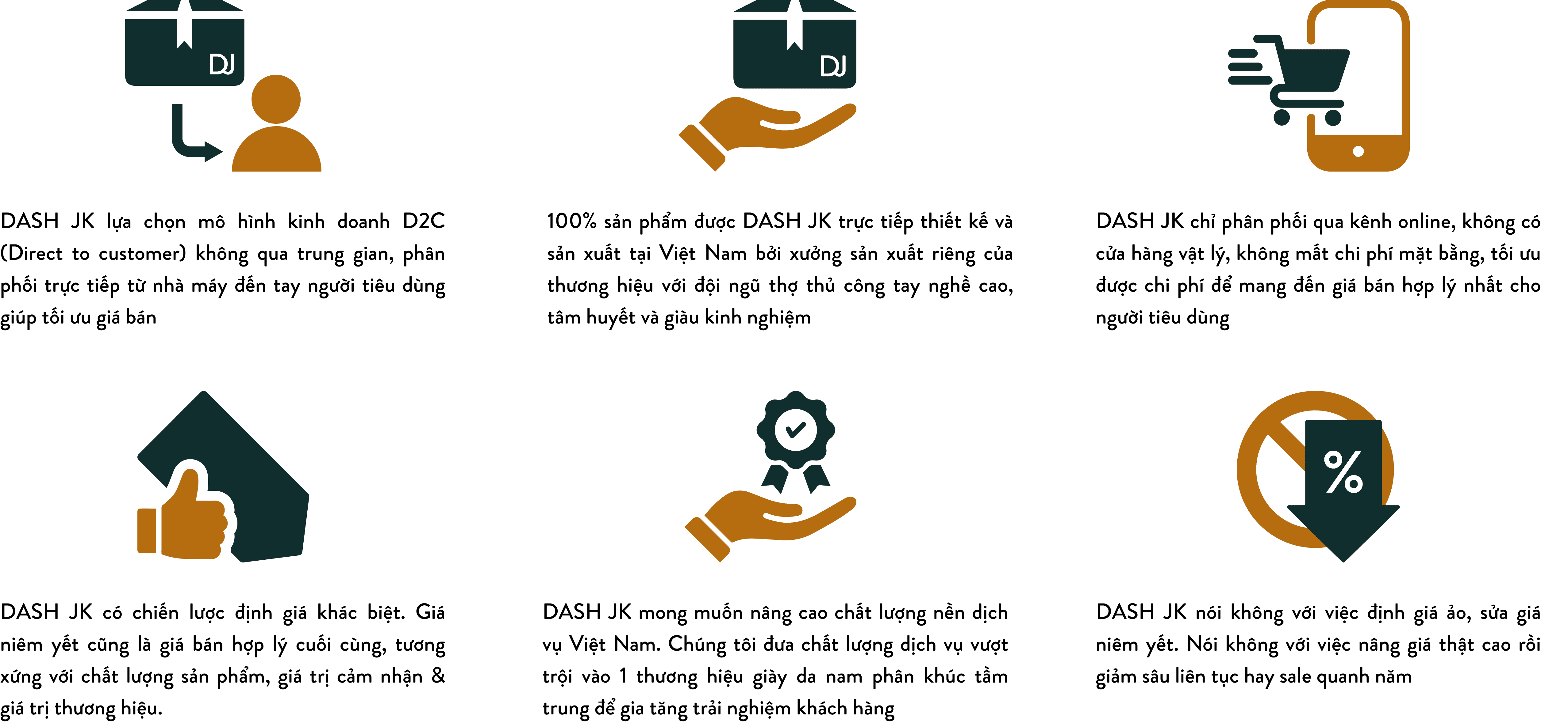 Mỗi đôi giày DASH JK là một tác phẩm nghệ thuật, được chăm chút tỉ mỉ, từ khâu thiết kế đến từng đường kim mũi chỉ. Khách hàng hoàn toàn yên tâm sở hữu những đôi giày da DASH JK tại bất cứ thời điểm nào.