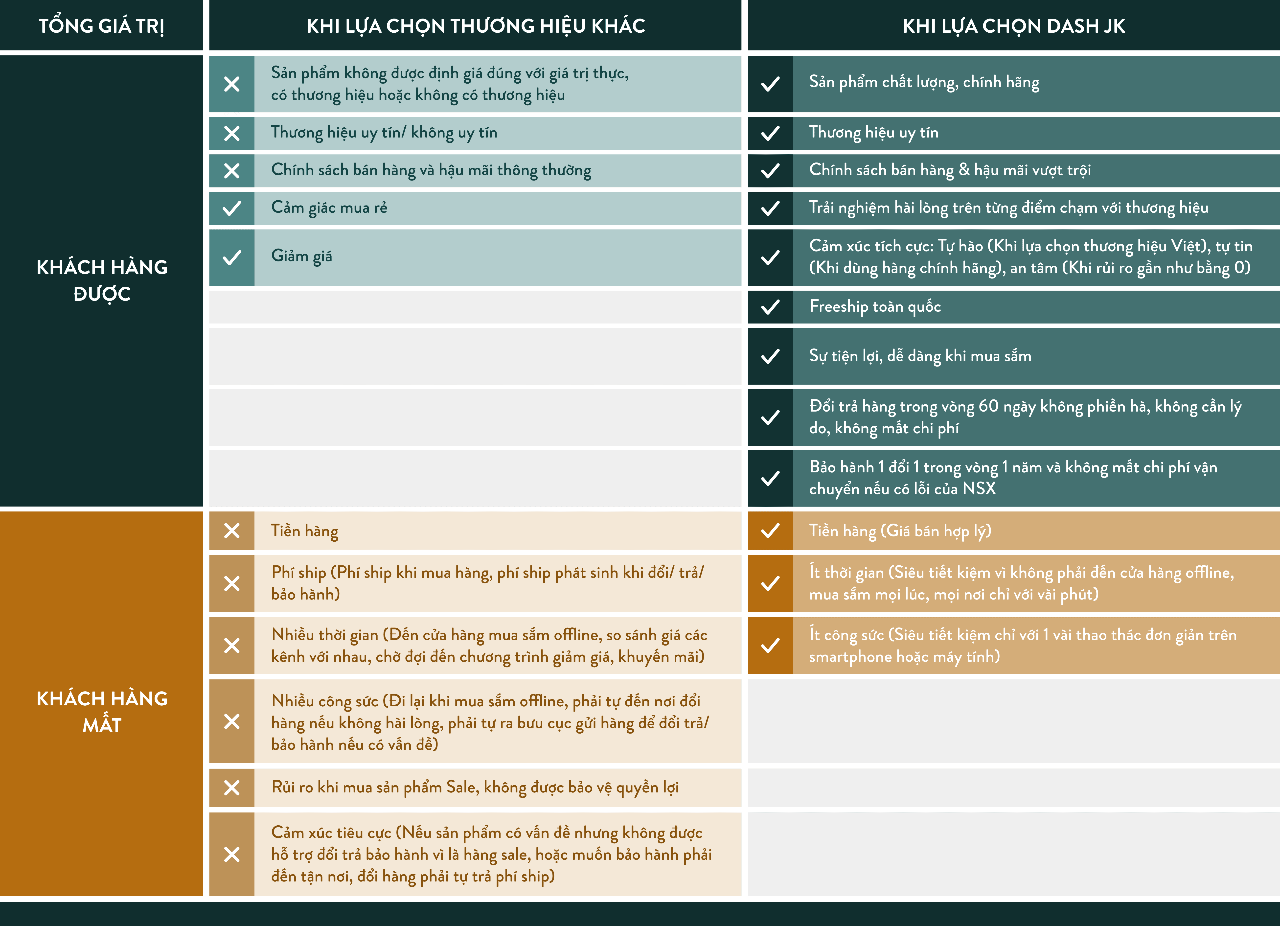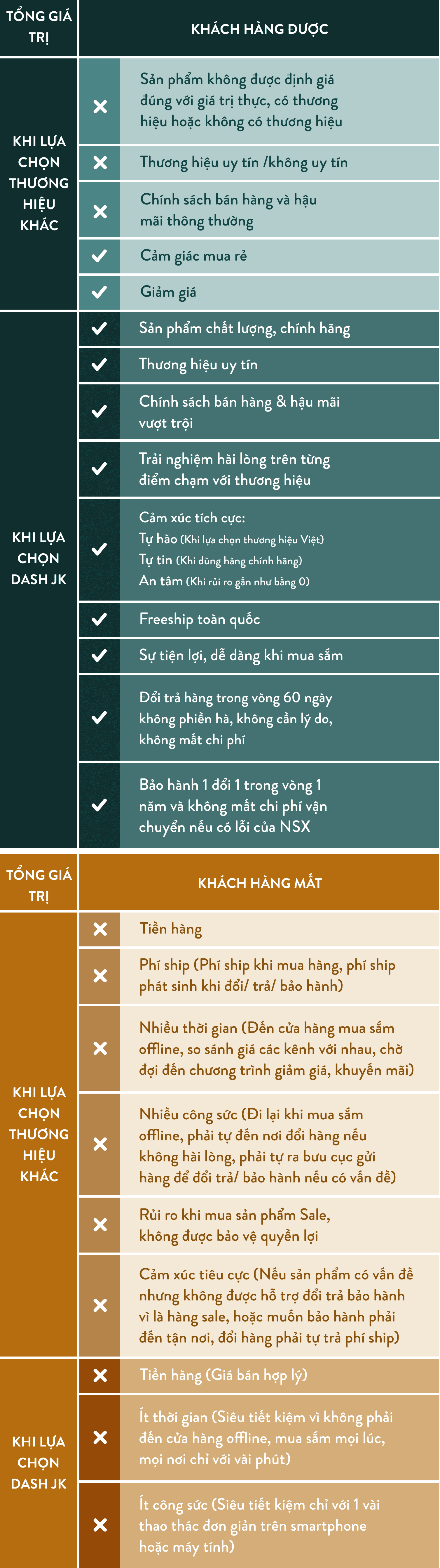 Bởi chủ động trong sản xuất, DASH JK có phần dễ dàng hơn khi đưa ra các chính sách bán hàng và chương trình tri ân. Trước khi ra mắt bộ sưu tập mới, DASH JK sẽ sale-off những mẫu sản phẩm cũ, lẻ size như một cơ hội để sản phẩm tiếp cận đến nhiều khách hàng hơn. Đồng thời cũng là cách để bộ sưu tập mới trình làng một cách ấn tượng nhất. Ngoài ra, những dịp đặc biệt như lễ, Tết, chúng tôi dành tặng khách hàng voucher giá trị hay quà tặng hấp dẫn thay lời tri ân chân thành của DASH JK.