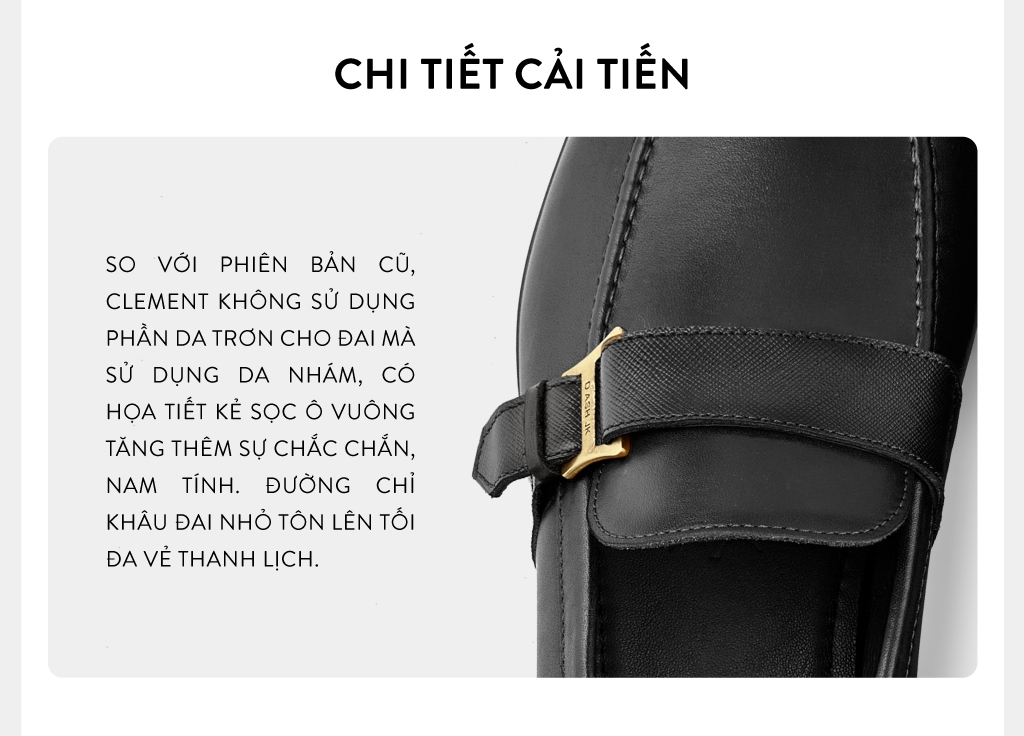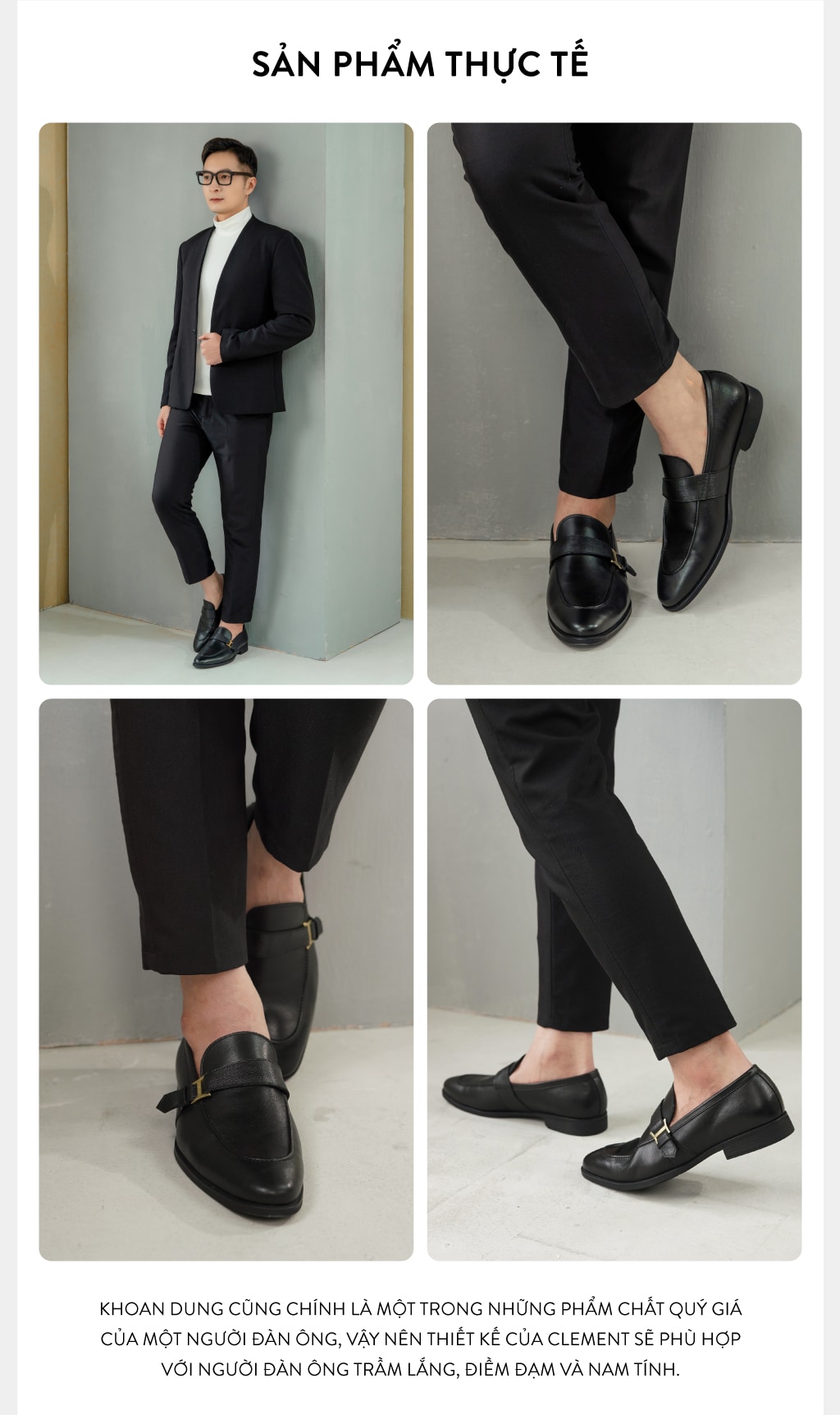 Clement là mẫu giày nam Loafer hiện đại với thiết kế đai ngang da nhám kèm khuy kim loại cực sang trọng. Mẫu giày sẽ đáp ứng nhu cầu trong nhiều dịp quan trọng như tiệc tùng, gặp gỡ đối tác hoặc tạo điểm nhấn cho trang phục công sở hằng ngày thêm phần ấn tượng. Phiên bản CLEMENT – Đen là một lựa chọn an toàn và linh hoạt cho mọi dịp.