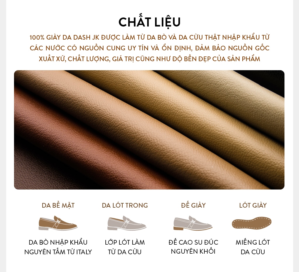 Tự hào thiết kế & sản xuất bởi DASH JK – Thương hiệu giày da nam của người Việt.