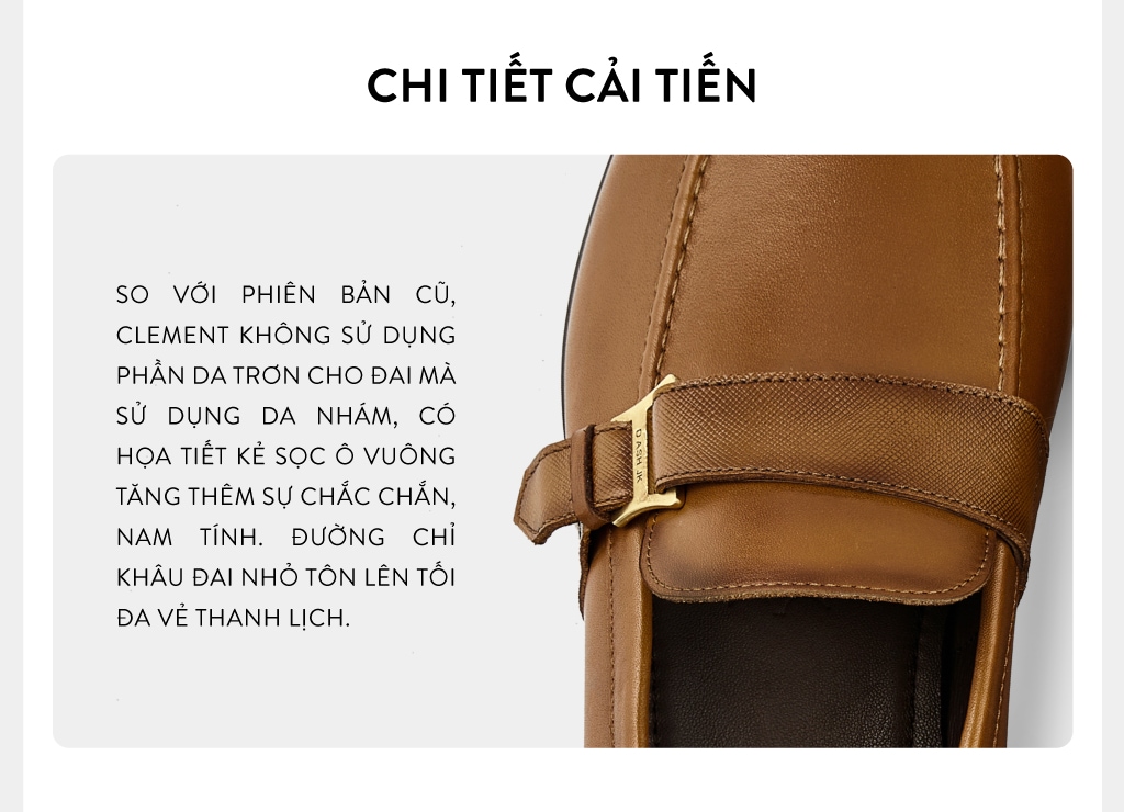 Clement là mẫu giày Loafer nam hiện đại với thiết kế đai ngang da nhám kèm khuy kim loại cực sang trọng. Mẫu giày sẽ đáp ứng nhu cầu trong nhiều dịp quan trọng như tiệc tùng, gặp gỡ đối tác hoặc tạo điểm nhấn cho trang phục công sở hằng ngày thêm phần ấn tượng. Phiên bản CLEMENT – Nâu bò mang lại lựa chọn mới mẻ và thời thượng cho mọi dịp.